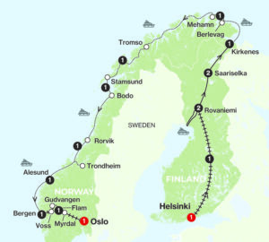 - Spend 9 days in the far Northern reaches, crossing the Arctic Circle twice